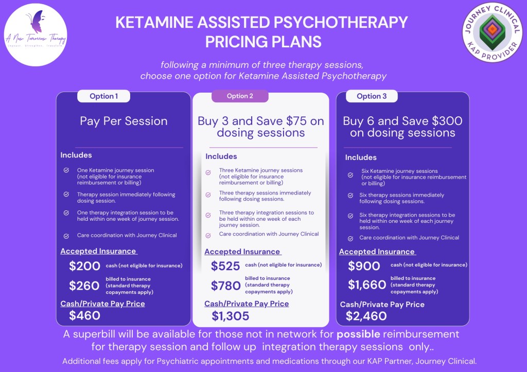 Ketamine-Assisted Psychotherapy is an affordable, accessible modality. Although the medical intake and follow ups are not covered by insurance, they are eligible for out-of-network reimbursement.